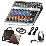 Bundle Includes Peavey PV 8 Compact 8-Channel Mixer Bundle with Mixer Bag, Equipment Cover, Two 20-Foot XLR Cables, Two 10-Foot Instrument Cables, and Headphones. The PV 8 compact mixer from Peavey is perfect for live or studio applications. The PV 8 mixer's reference quality mic pre-amps are super quiet with less than 0.0007% of total harmonic distortion. Six channels, with one through four having XLR inputs, channel insert, phantom power, 3-band EQ and effects send. The master section offers assignable tape input and a master contour EQ which simultaneously cuts mids while slightly boosting the bass and treble in the overall mix. Outputs include L & R for main and control room, effects send and headphones. Stylish metal casing adds overall strength and durability.